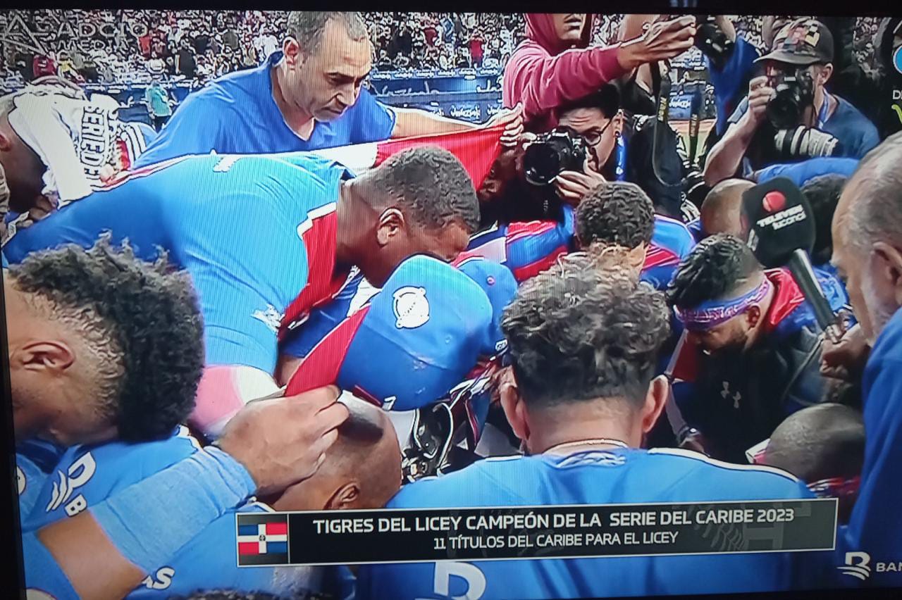Con un gran gesto de agradecimiento a Dios Todopoderoso, por haberles permitido ganar la serie del Caribe 2023, los Tigres del Licey inclinaron sus rostros al Dios Altísimo como muestra de agradecimiento.